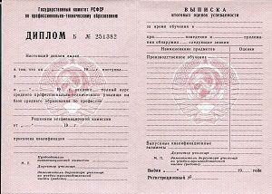 - Документ: Диплом ПТУ 1995 года